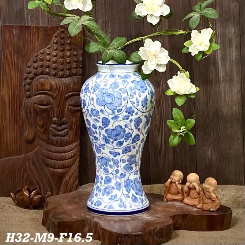 Bình hoa gốm men lam cao cấp – Chân đèn